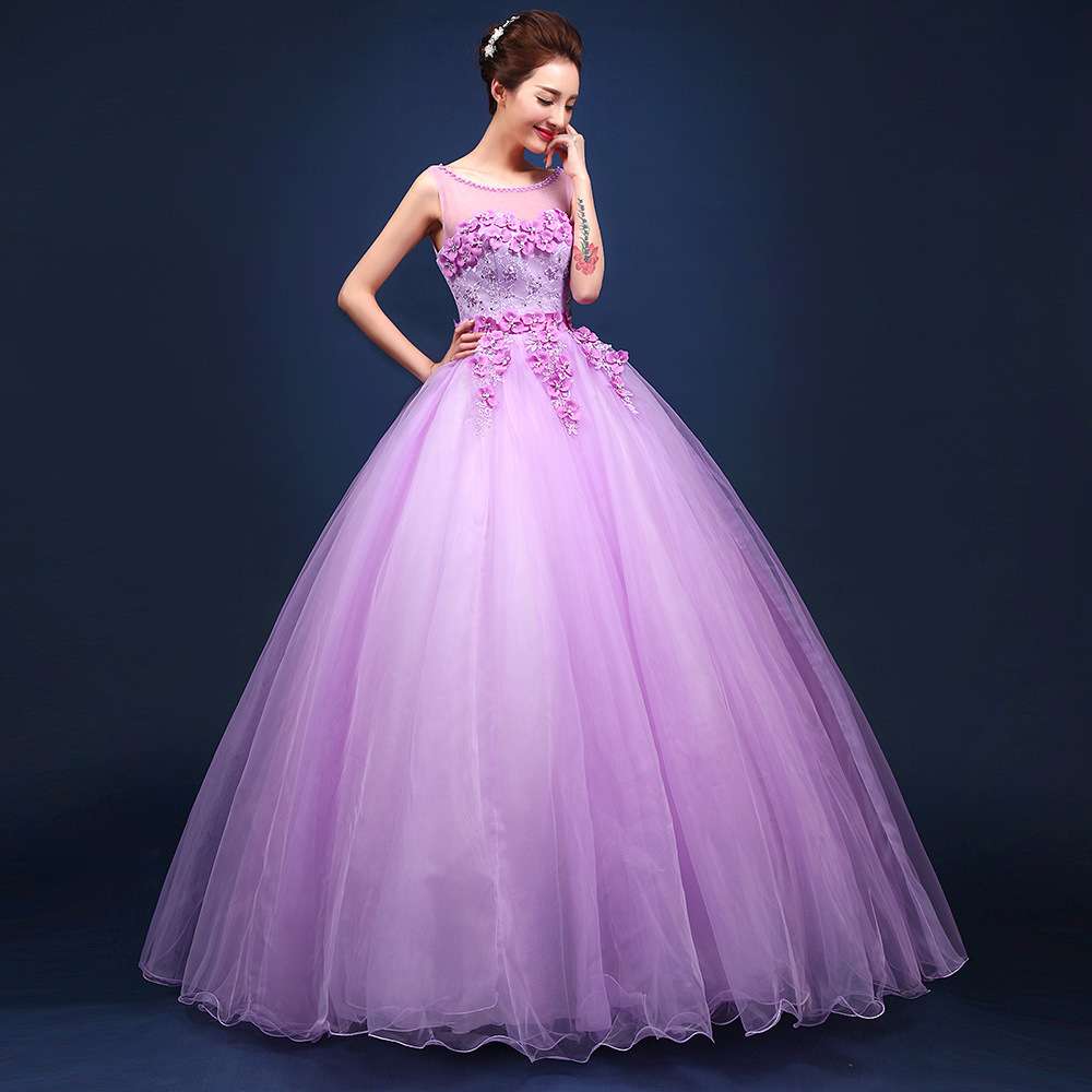 特別な日を彩る、優雅な紫のカラードレス。透け感のある上品なネックラインと、胸元の繊細な花モチーフが魅力的に映えます。ふんわりとしたボリュームのあるチュールスカートが、披露宴の華やかさをさらに際立たせ、あなたの美しさを引き立てる一着です。紫のドレスで、記憶に残る瞬間を演出しましょう。