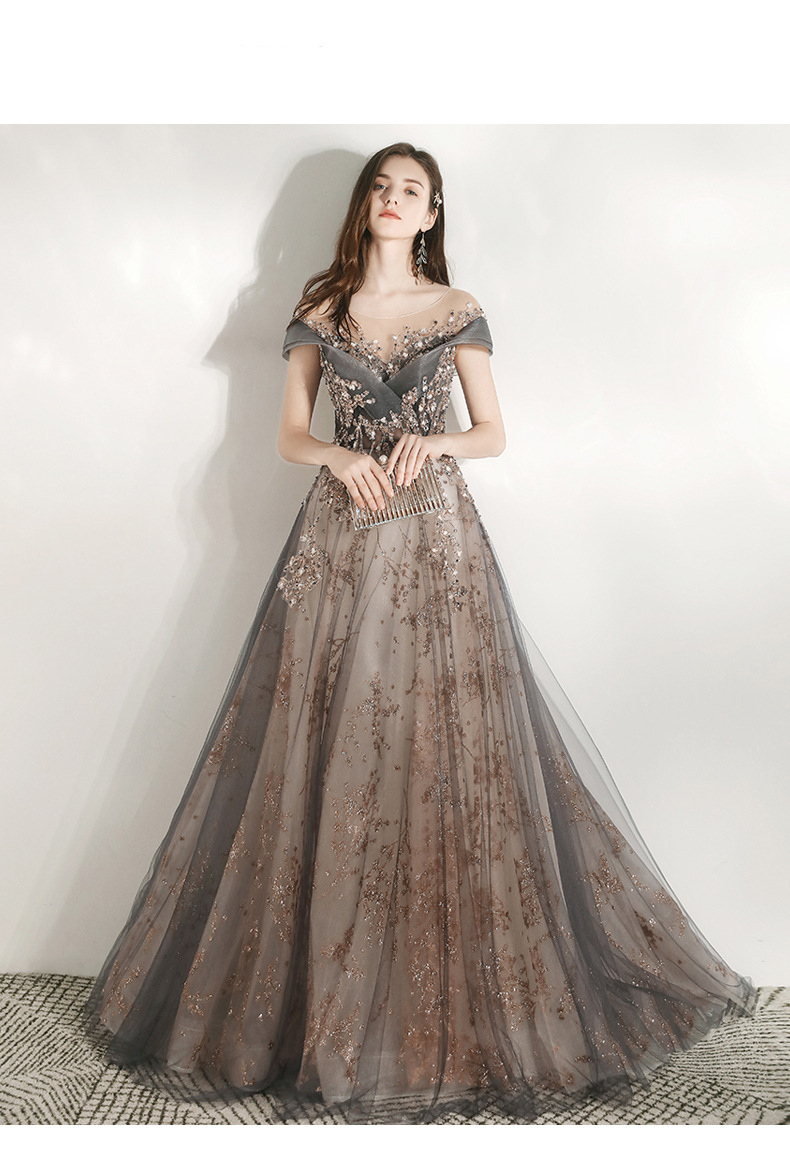 華やかな刺繍とスパンコールが贅沢に施された結婚式用カラードレス。オフショルダーのデザインがエレガントさを引き立て、Aラインシルエットが美しいドレープを生み出します。披露宴でも目を引く、繊細なチュール素材を重ねたこの一着は、特別な日を彩る完璧な選択です。シーンにふさわしい華やかさと上品さを兼ね備え、思い出に残る瞬間を演出します。