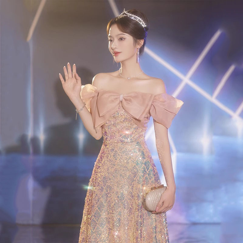 上質なスパンコール素材で仕立てたこのカラードレスは、二次会にぴったりな華やかさを演出。光を反射し、輝く姿が特別なひとときを引き立てます。デザインは洗練されており、動くたびに魅力的な印象を与える一着。思い出に残る夜を彩る、あなたのスタイルを引き立てるドレスです。
