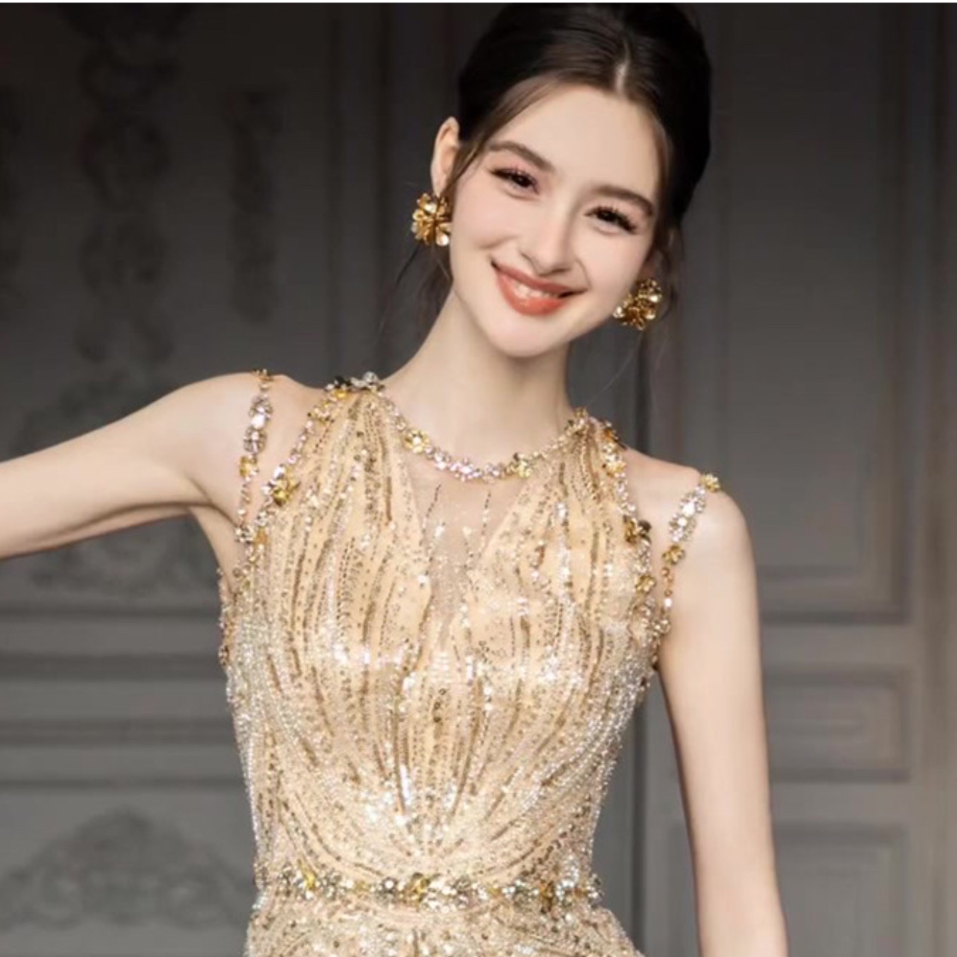 上質な生地に贅沢な刺繍とスパンコールを施した黄色のカラードレス。パーティーシーンにぴったりな一着で、スレンダーなシルエットが大人の魅力を引き立てる。背中部分の美しいデザインが優雅さを演出し、自信を持って着こなせる特別なドレス。華やかさと上品さを兼ね備えたこのドレスで、注目を集めること間違いなし。