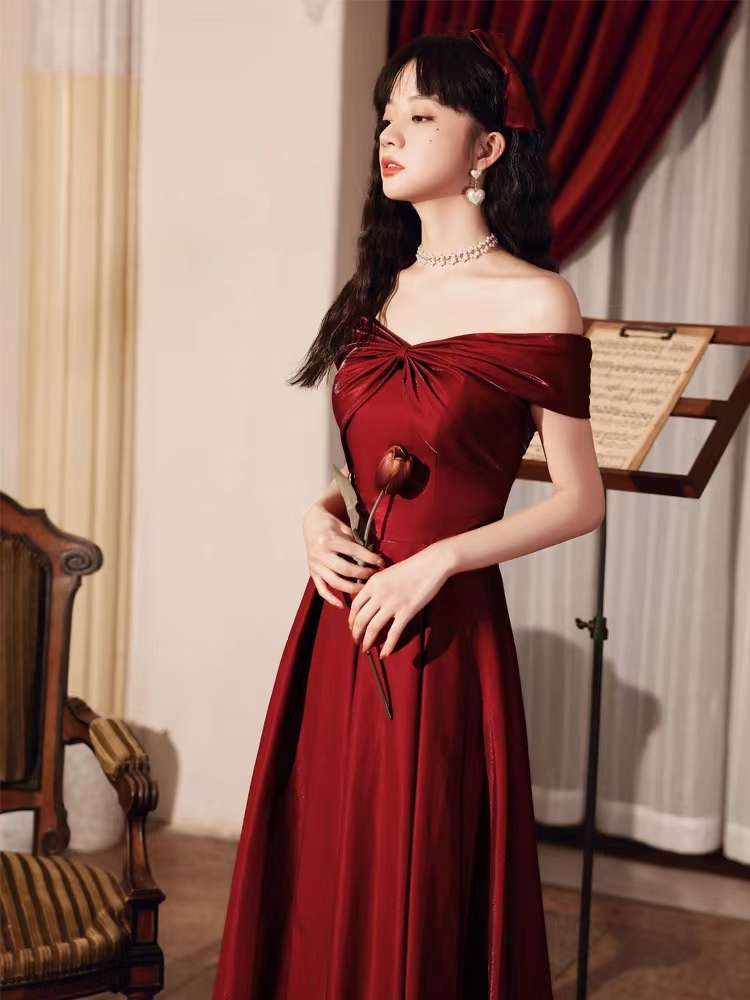 赤いカラードレスは、二次会にぴったりな一着。胸元の美しいドレープが顔周りを引き立て、オフショルダーデザインが女性らしさを演出。華やかな赤色が注目を集め、特別な夜を一層魅力的に彩ります。自信を持って着こなせるこのドレスで、素敵な思い出を作りましょう。